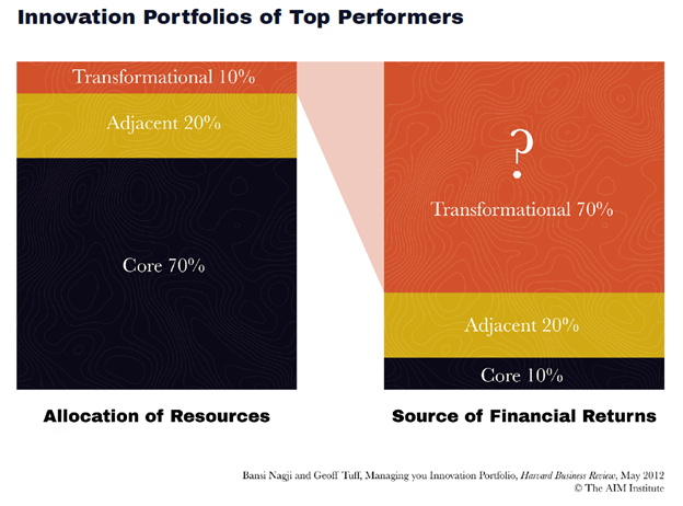 Bold, creative thinking and expansive strategic vision in unfamiliar markets can give you a competitive edge and create profitable and sustainable organic growth. In fact, Harvard Business Review found that top-performing companies that put 10% of their resources into transformational innovation were getting 70% of the financial returns.