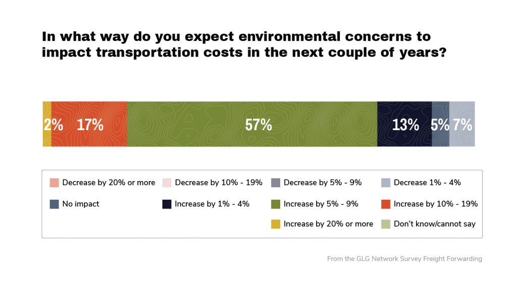 When we asked them about the impact that environmental concerns would have on transportation costs, 89% of those we surveyed said they expect costs to increase in the next couple of years.