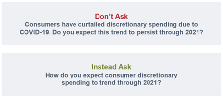 In this example, you will force the respondent to draw from their own experience to answer the question.