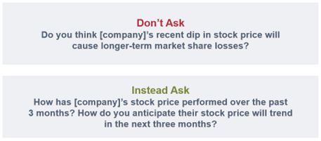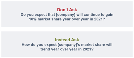 The first question implies a yes/no answer and presupposes that growth will likely occur. The second question allows the respondent to answer based on their knowledge of market dynamics.