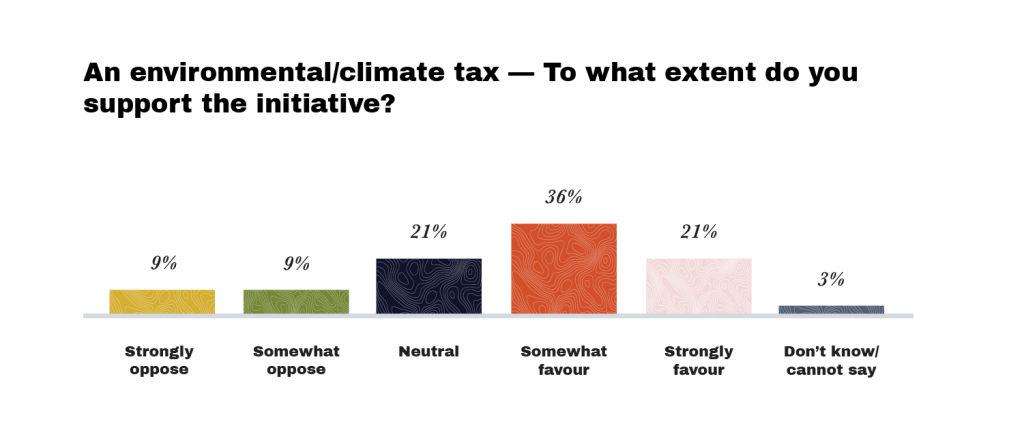 More than 50% of our respondents support a new environmental and climate tax, but 65% of them are ready to pass these extra costs to the clients/consumers. The exact impact of higher costs for consumers is difficult to assess, but for 70% of the enterprises participating in the survey, consumers are “cost sensitive.” This means that passing extra costs to them may bring about declining sales and profits for the enterprises. For them to survive and remain competitive, some of these extra costs would need to be internalized.