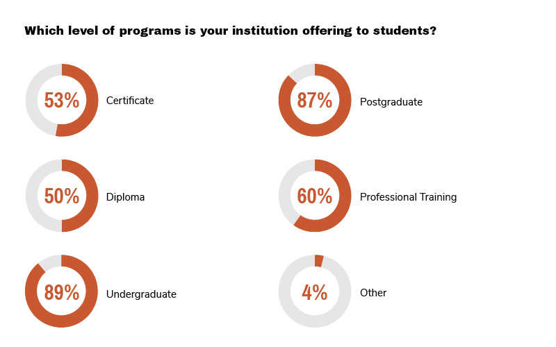Faculty and management of European private institutions have the opportunity to follow the trends of U.S.-based private institutions and introduce a larger number of high-margin postgrad and professional-type courses to help increase their niche and developed brand required for sustainable growth. The survey, for example, shows that only 60% of respondents’ institutions are currently offering professional training courses.